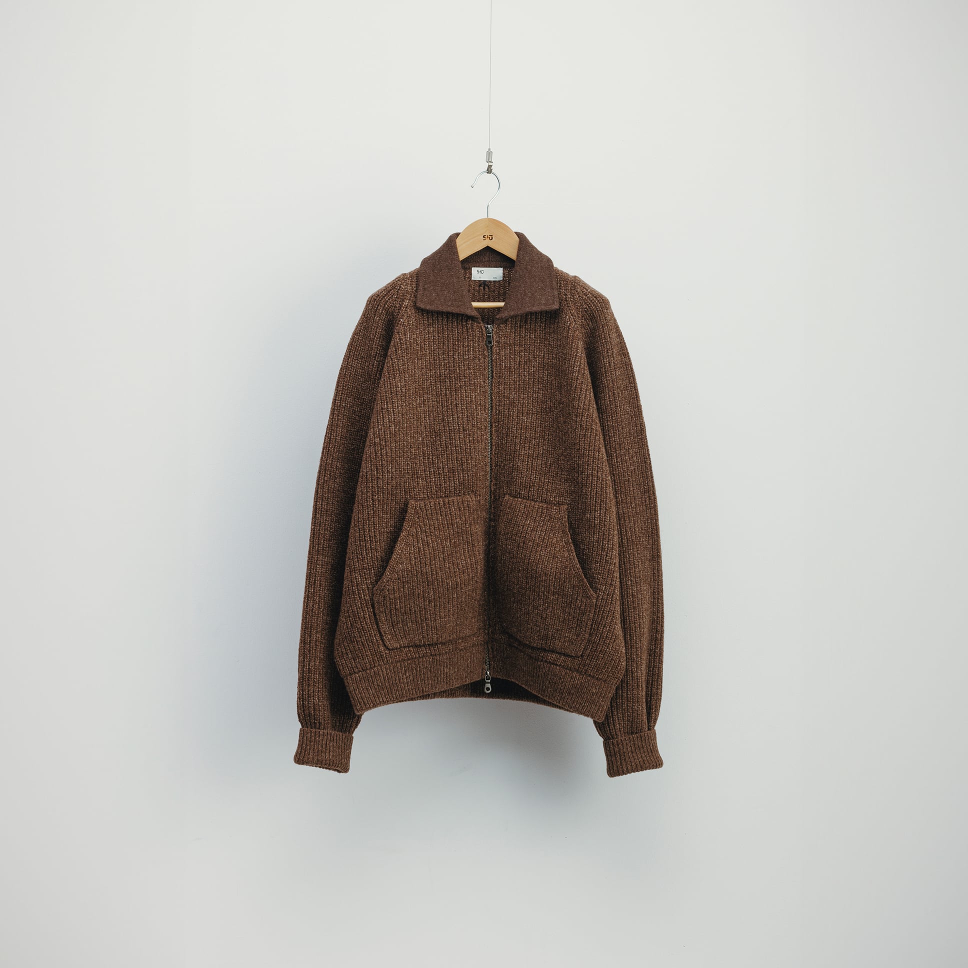 畦編みのニットブルゾン