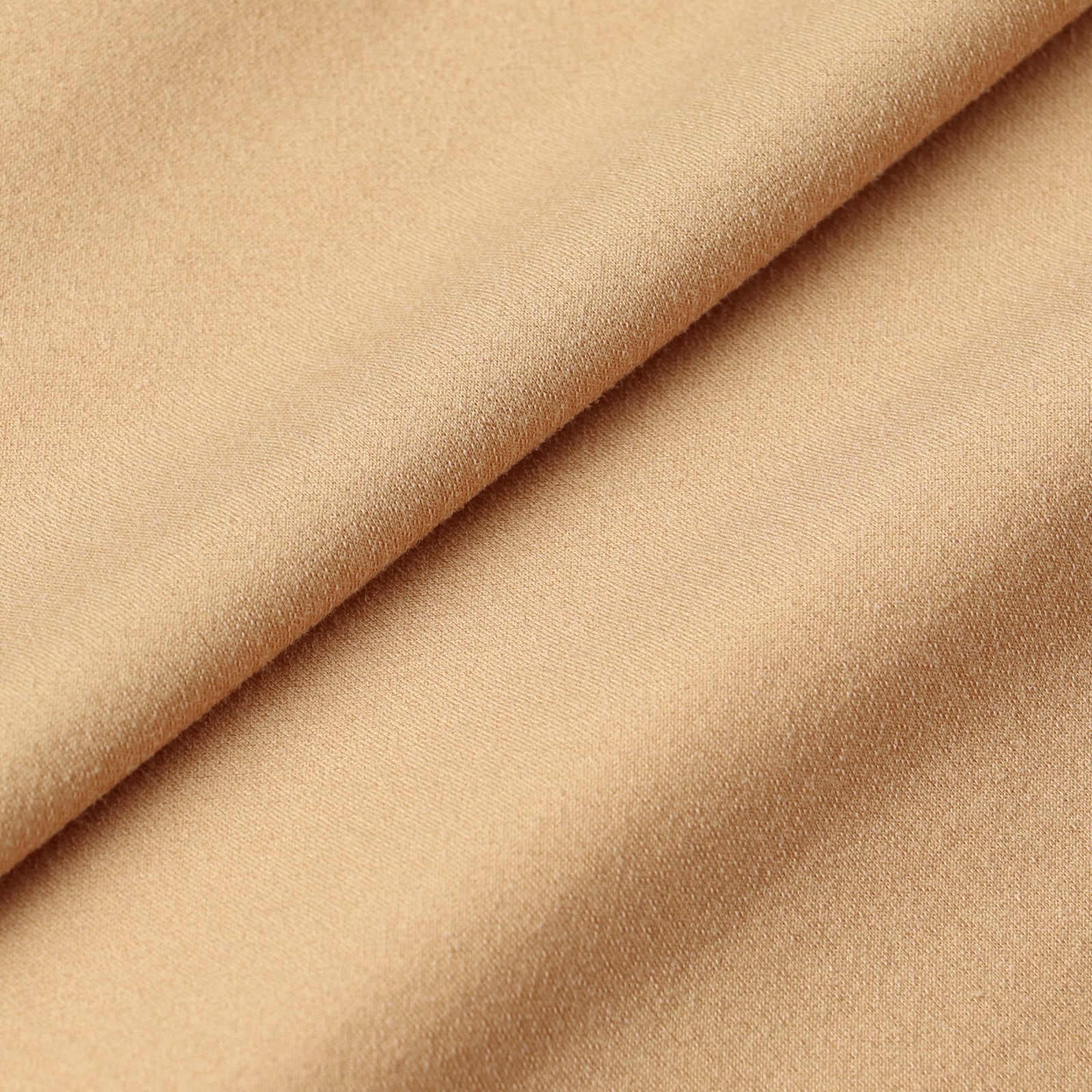 36G オリジナル編機で、タイプライターという織物の高密度平織組織を実現。ストレッチ性が高く一度着ると止められない着心地、そして、着用時のしわなどの形態変化も少なく、イージーケア性も高い。キュプラの落ち感と光沢感にハリ感のあつオリジナル糸を使用することで、ハリ感を出しております。こちらの素材にフィブリル加工(繊維が摩擦されることによって起こる毛羽立たせる加工)を施しマットなフェード感を出しております。ハイゲージと糸独特のハリ感、キュプラの光沢感、イージーケアを持ち併せた我々にしかできないニュースタンダード素材。独自開発の 30/1 キュプラスパンを双糸と 75D 高捲縮エコポリエステルで編立ました。ポリエステルを多く入れることで、洗濯後のイージーケア性を演出しております。また、肌側にはポリエステルを入れることで、吸水性、速乾性また、キュプラの吸湿性、放湿製もありオールシーズン着用頂けます。わたりを程よくとり、軽くテーパードをかけた定番シルエットです。フロントは、天狗仕様にて、ドレスな雰囲気にも仕上げております。どのようなシーンでも着用頂けるパンツです。