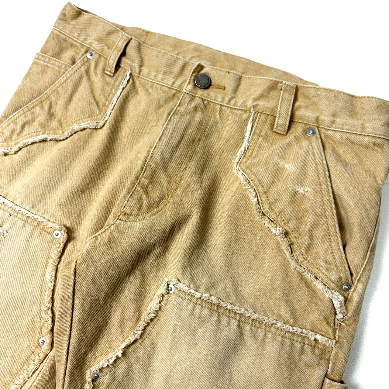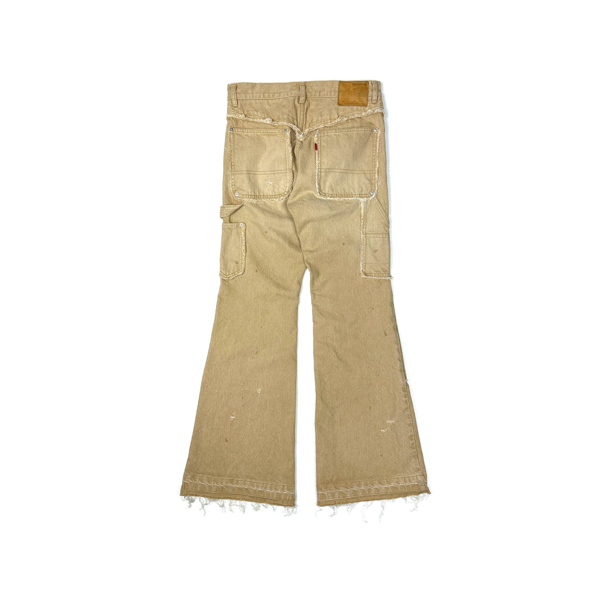 FADED DOUBLE KNEE PAINTER FLARE PANTS-Beige