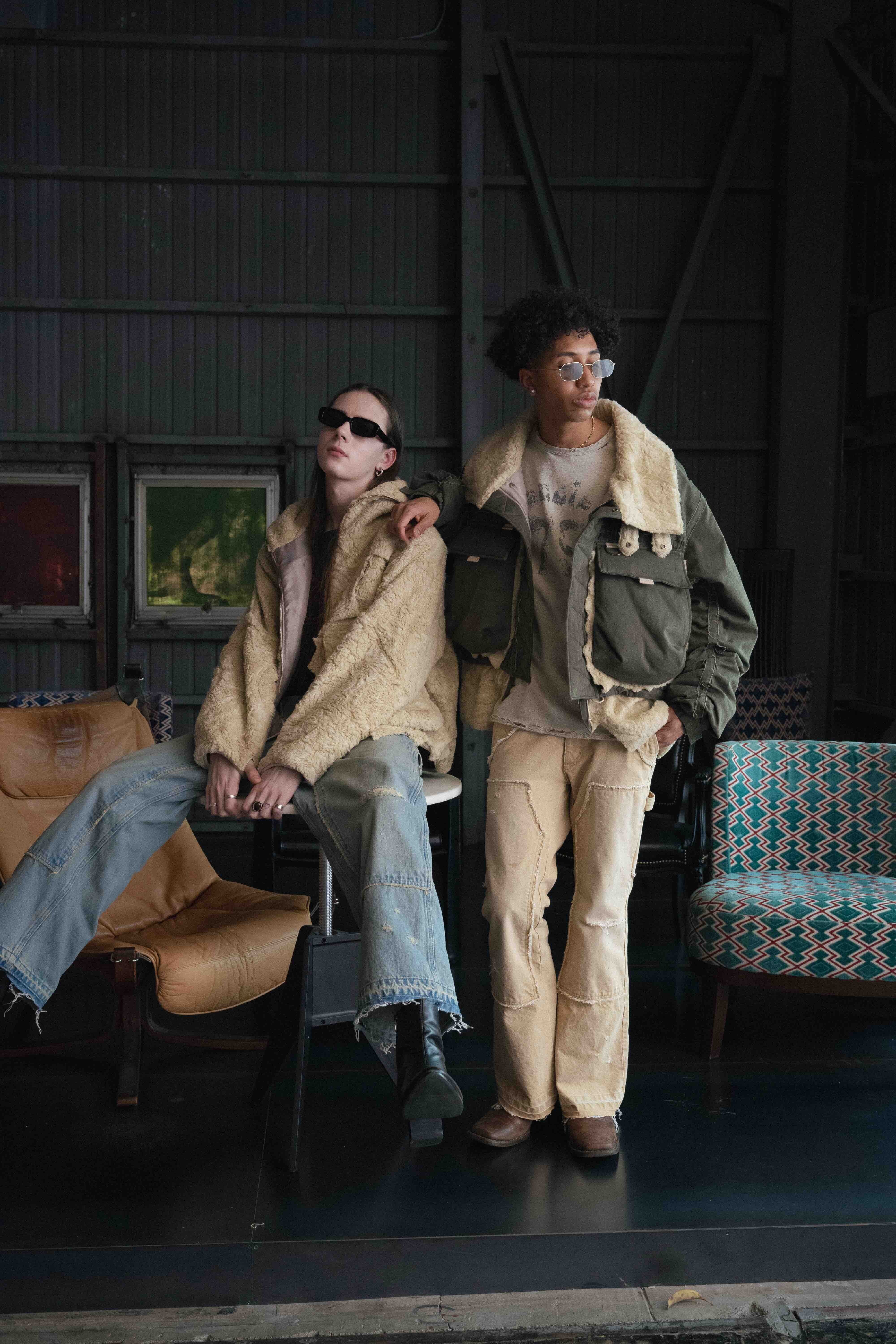 加⼯の段階で独⾃のレシピでブリーチ、ダメージ、オーバーダイ、そして1点1点職⼈さんの⼿作業により汚しを施した絶妙な塩梅の着古したデニムを表現しました。