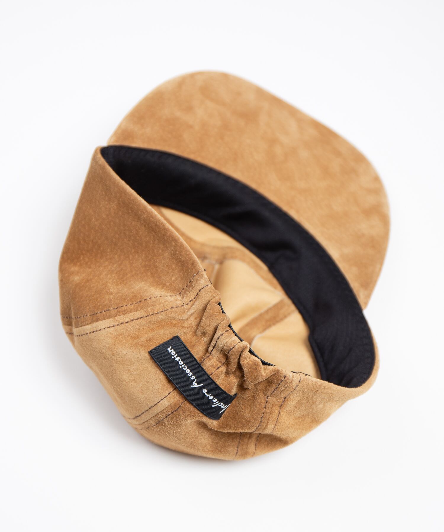 ピッグスエードを使用したジェットキャップです。やや長めのブリムと配色ステッチが特徴です。レザーの上品さと遊びの利いたデザインが程よくアクセントになっています。