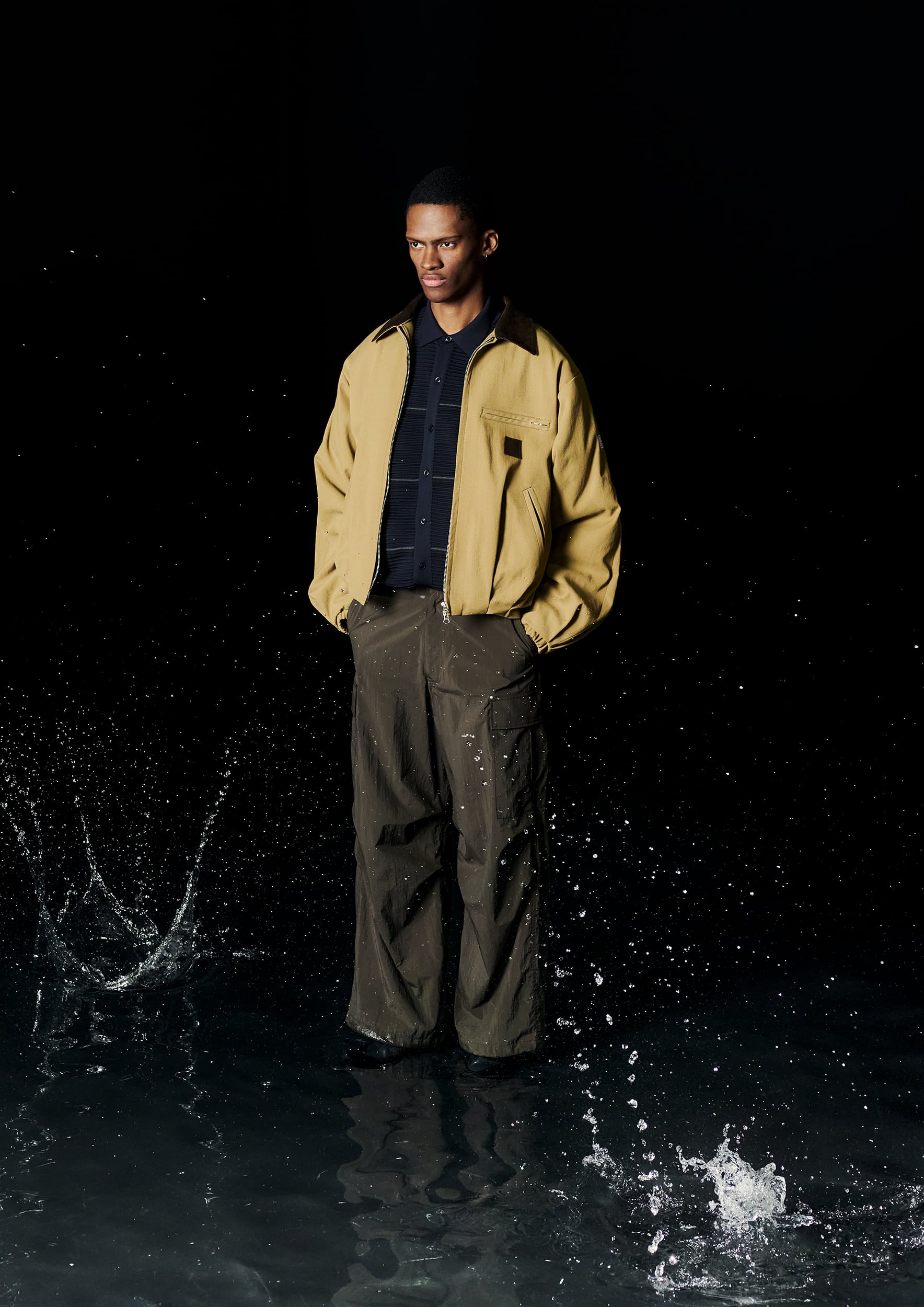 硬くハードな印象のあるアイテムを素材やパターンで真逆に仕上げたワークジャケット。