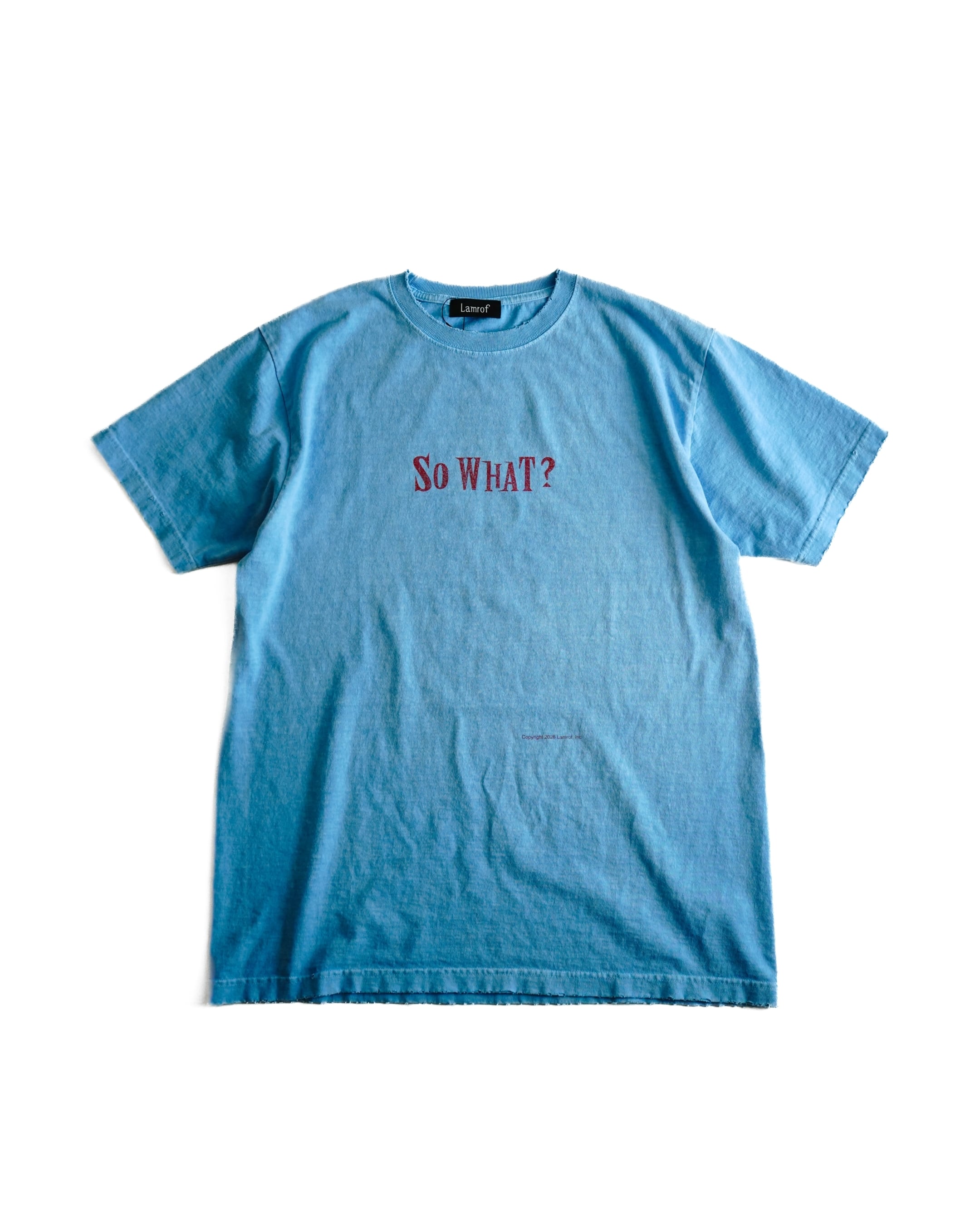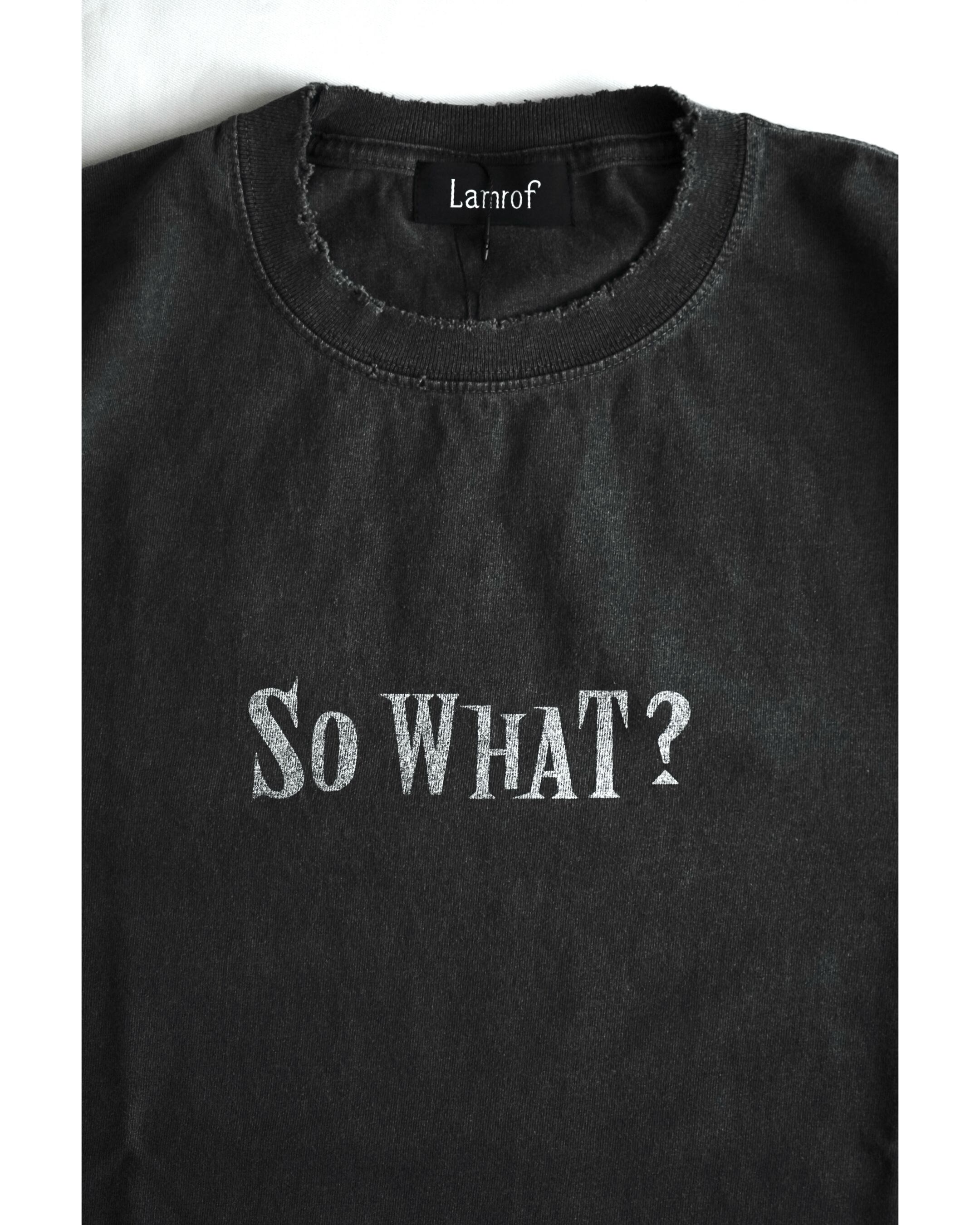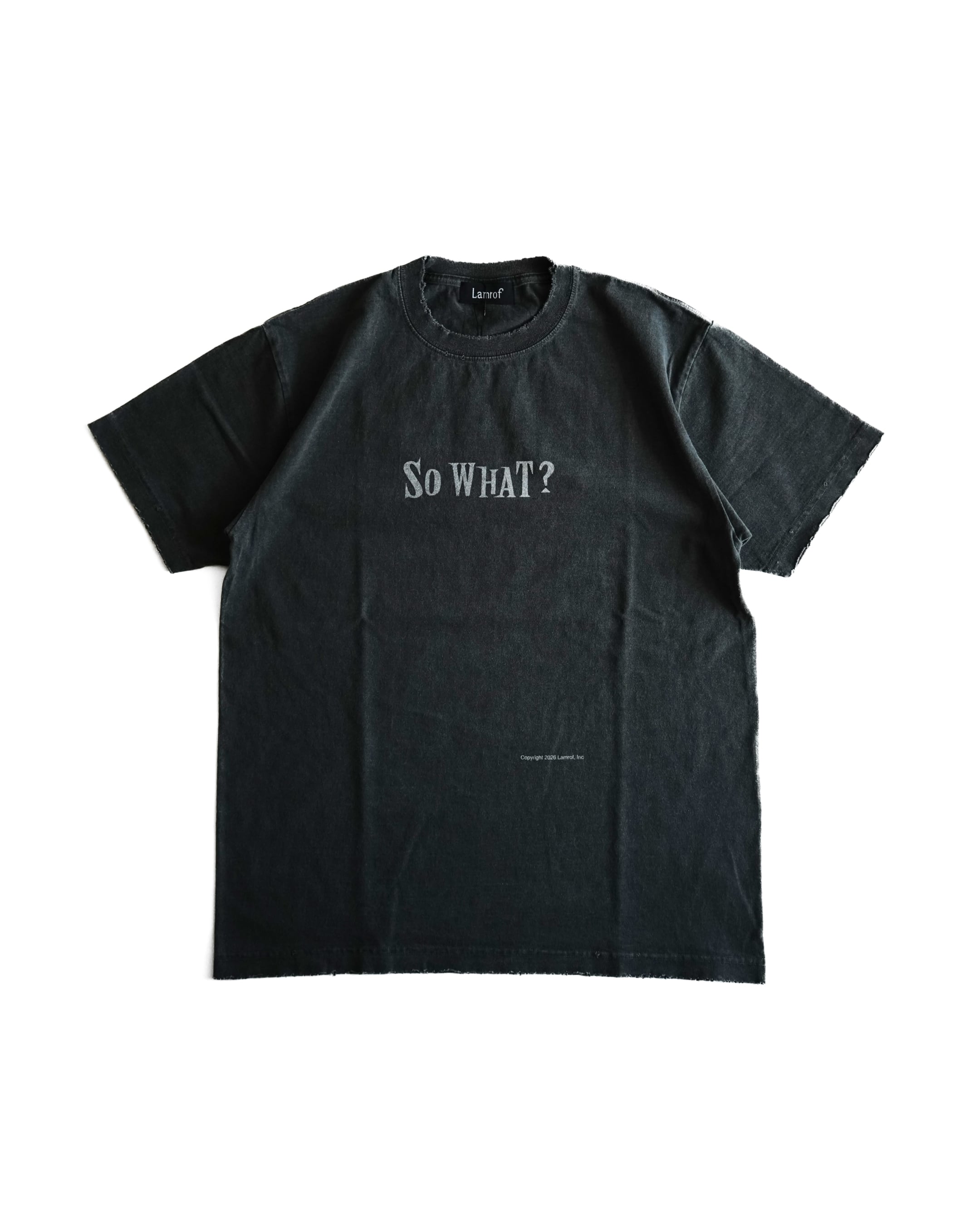 レジェンドトランペッター「マイルスデイビス」の口癖であった So What –だから何- に「?」を加え問いかけ式の表現として新たにメッセージ化して製作したオリジナルグラフィック。音楽性やリズムを感じるような手書き文字で表現することで言語としての強さを緩和した仕上がり。 私自身もすごく大好きな言葉で、当時マイルスが音楽の方向性や、ジャズ表現の新たな時代を切り開く中でメディアに様々な質疑が投げかけられた際に「だから何?」とよく用い一刀両断していた彼を表わす合言葉。続けて彼は「ジャンルやカテゴリは関係ない、全て“音楽“という一つのジャンルだ」と常々語っていたことも印象的。最高にCOOL。定番のTシャツは経年変化を感じられる様なダメージ加工、バイオウォッシュ加工、柔軟加工を施し、フェード感の出るオリジナルカラーに染め仕上げたオリジナルボディを制作。