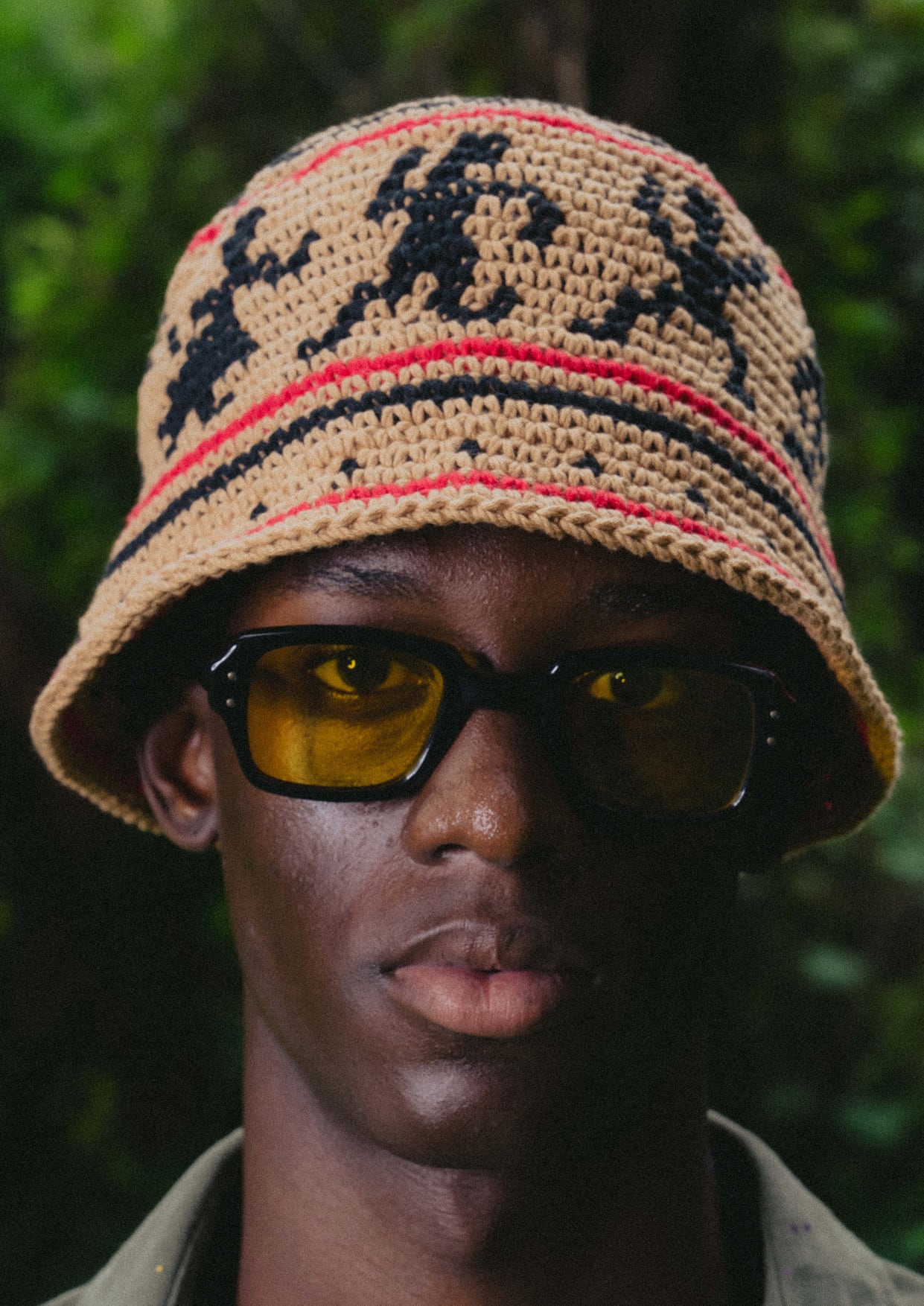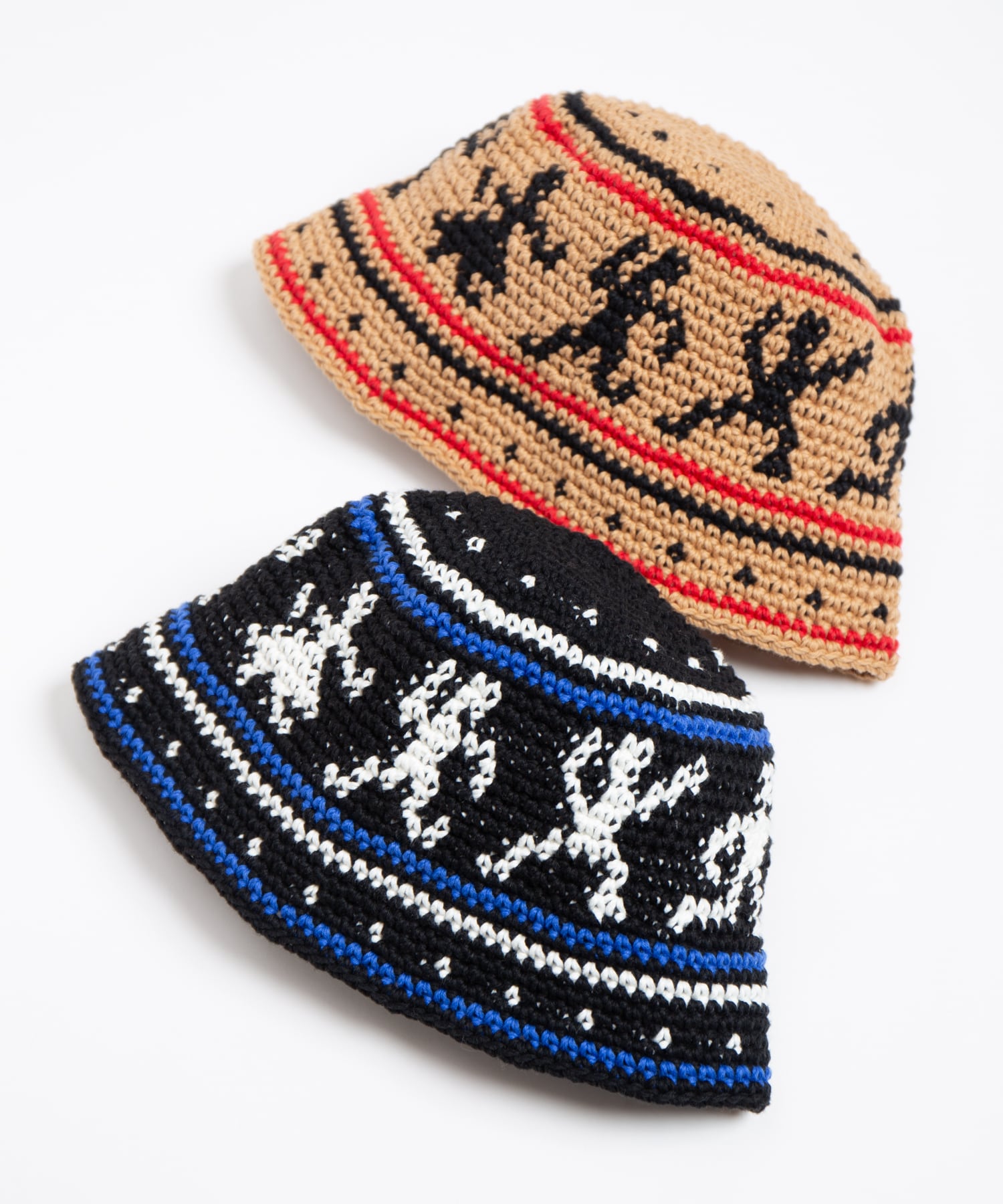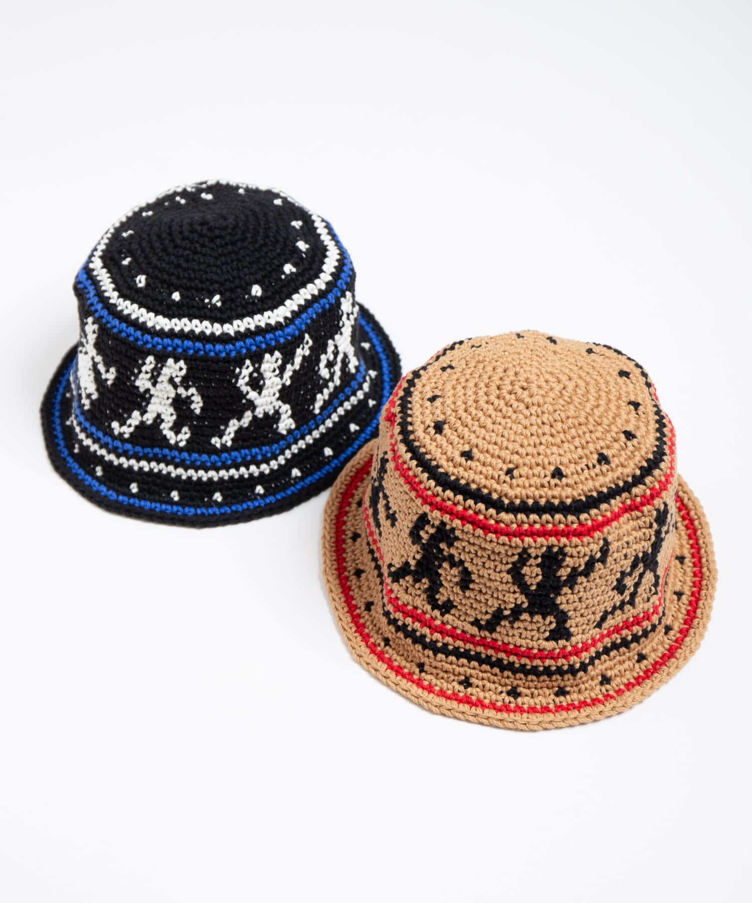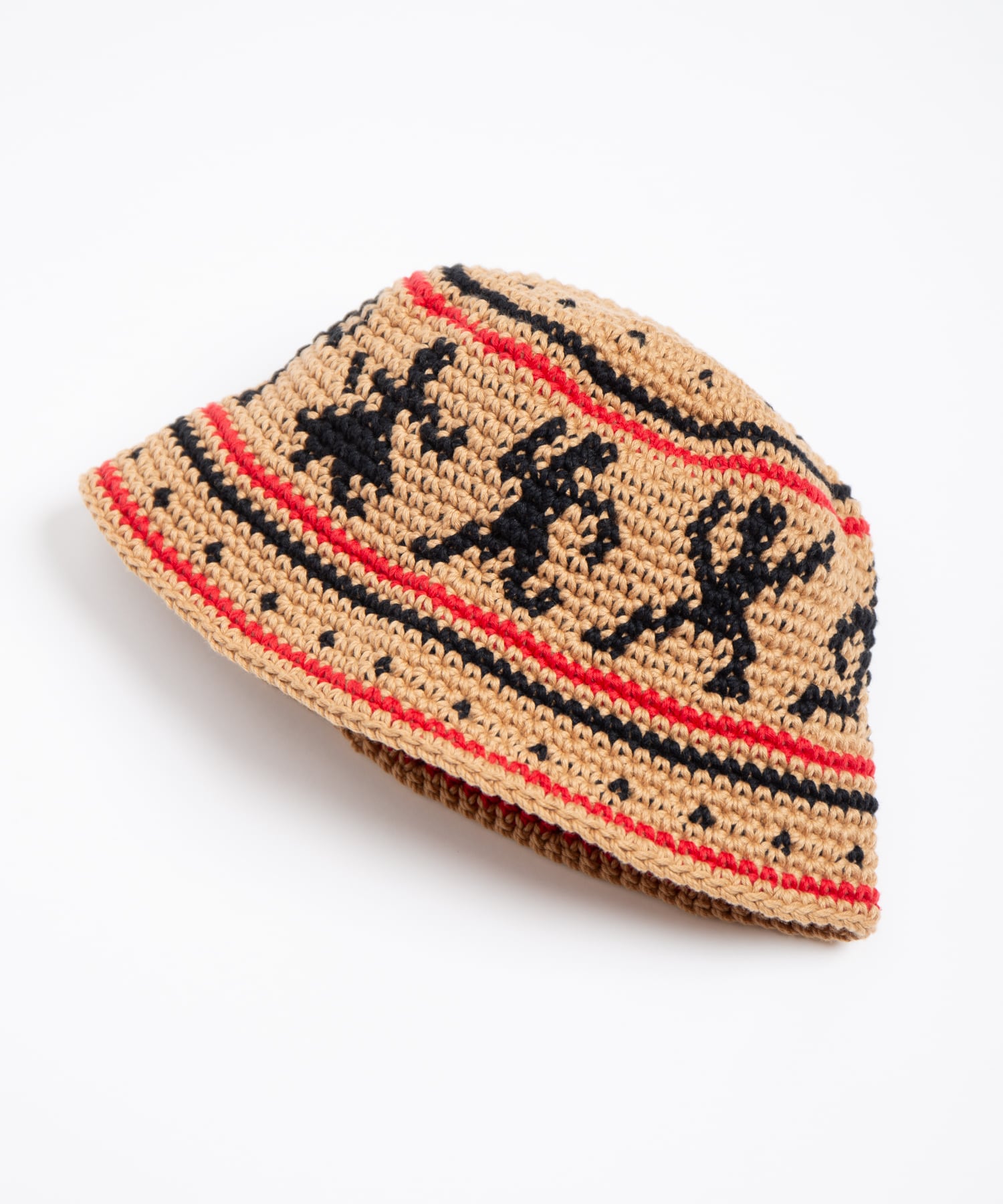 ハンドニットで編み立てたニットハットです。60年代カウンターカルチャーを象徴とするウッドストックをイメージしたデザインが特徴になっています。糸はコットン糸を使用している為、シーズン問わずご使用頂けます。着用をしていくうちに頭にフィットをしていくよう少しきつめのサイズ感になっています。中性洗剤を使用してぬるま湯で手洗いすることが可能です。