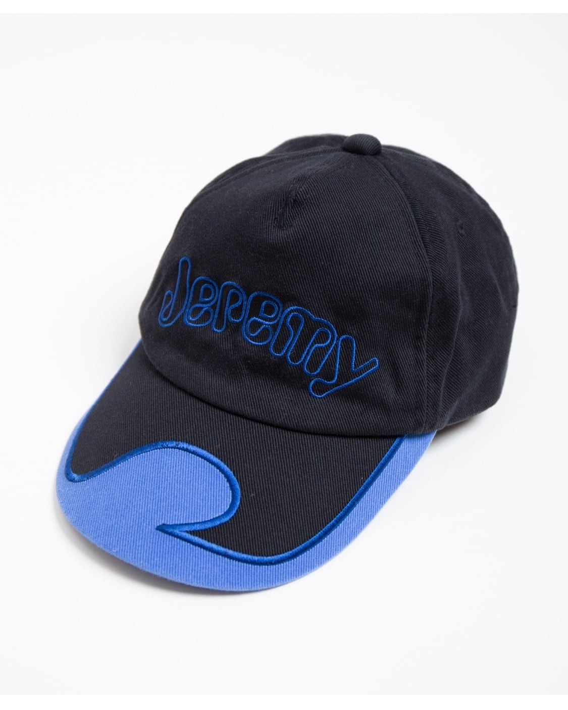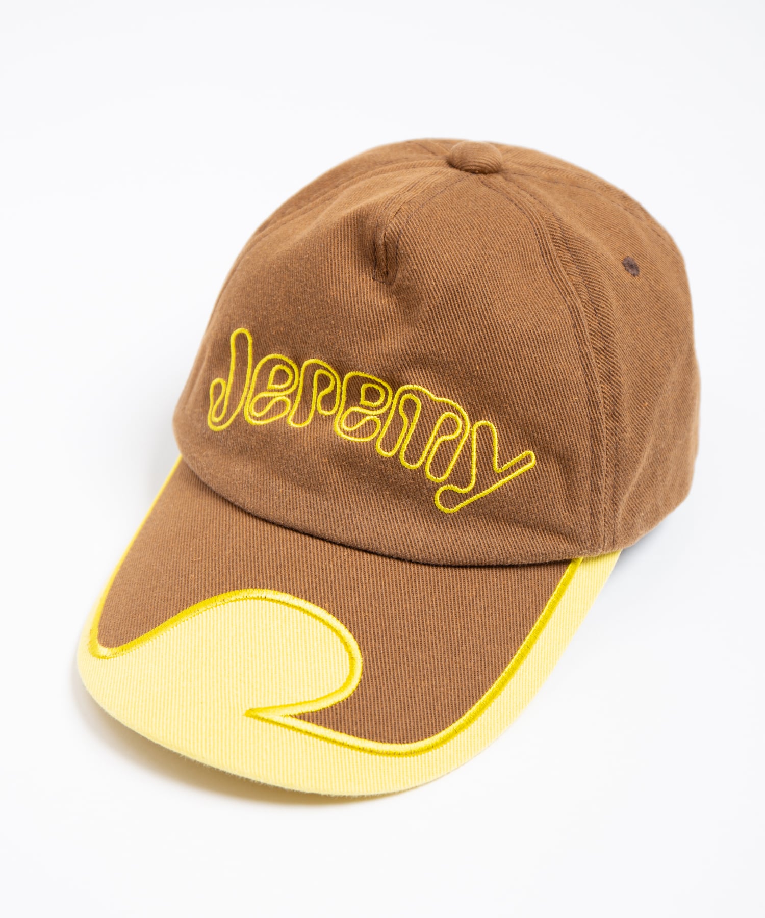 コットンツイル生地を使用したロゴキャップです。製品にオゾン加工をかけ着古し感をだしています。ビートルズのアニメーション映画『イエローサブマリン』に登場するキャラクター『Jeremy』の名前をロゴにあしらったデザインです。ブリムは大胆な切替しがデザインの特徴になっており、レーシングキャップの雰囲気をイメージしています。