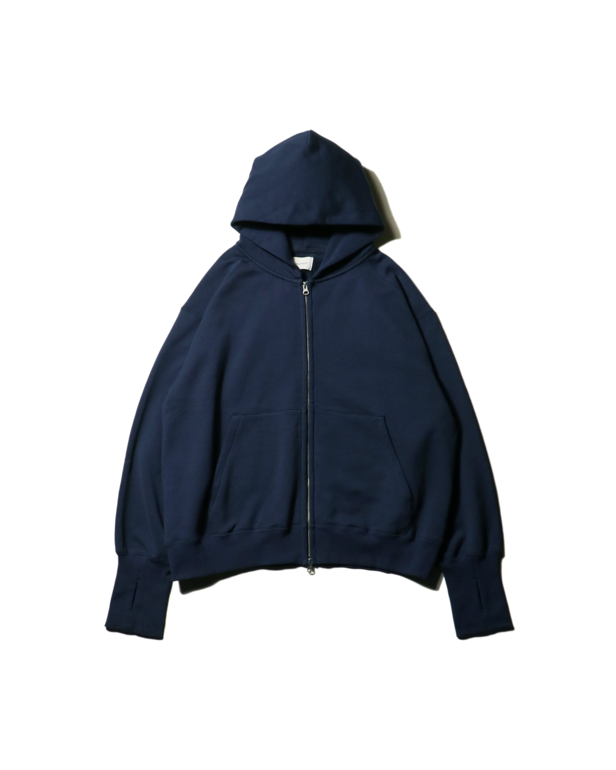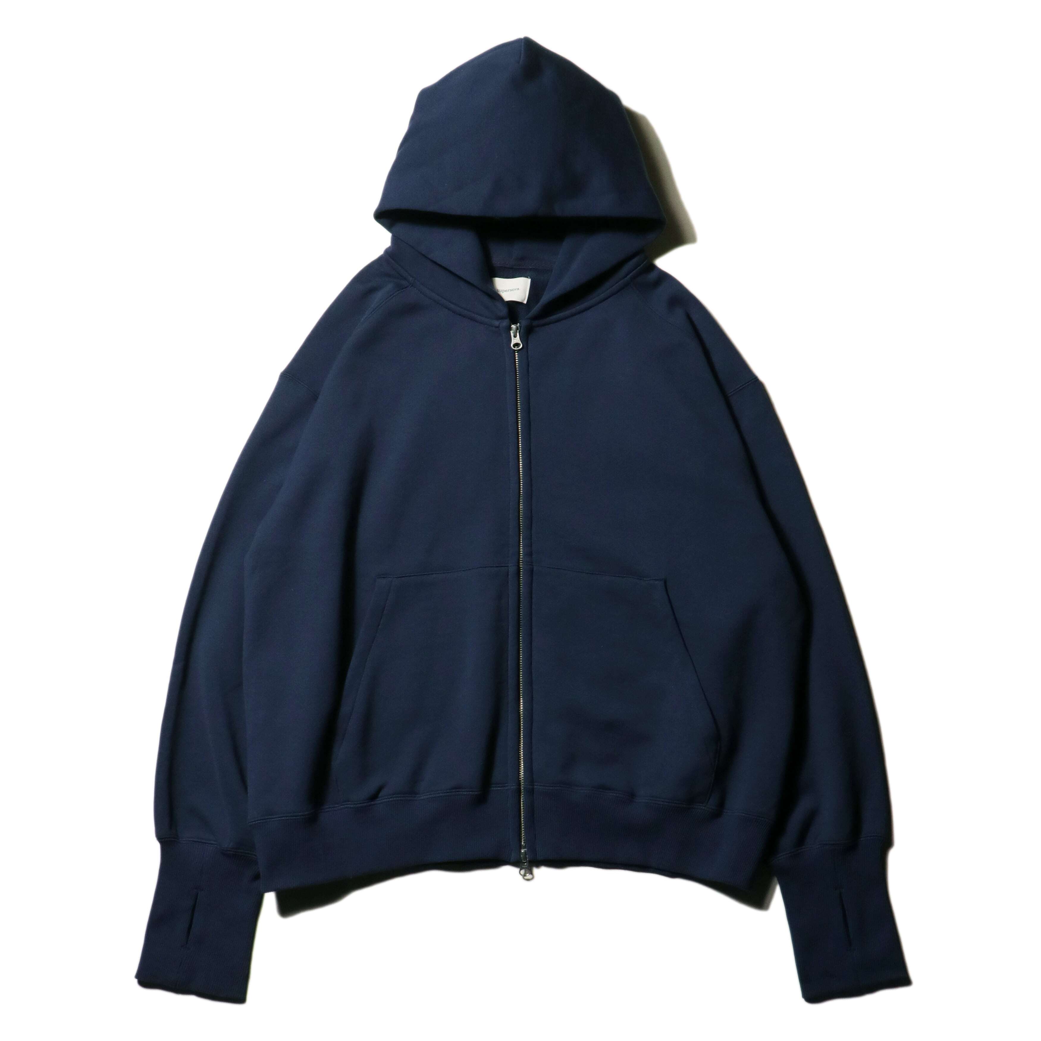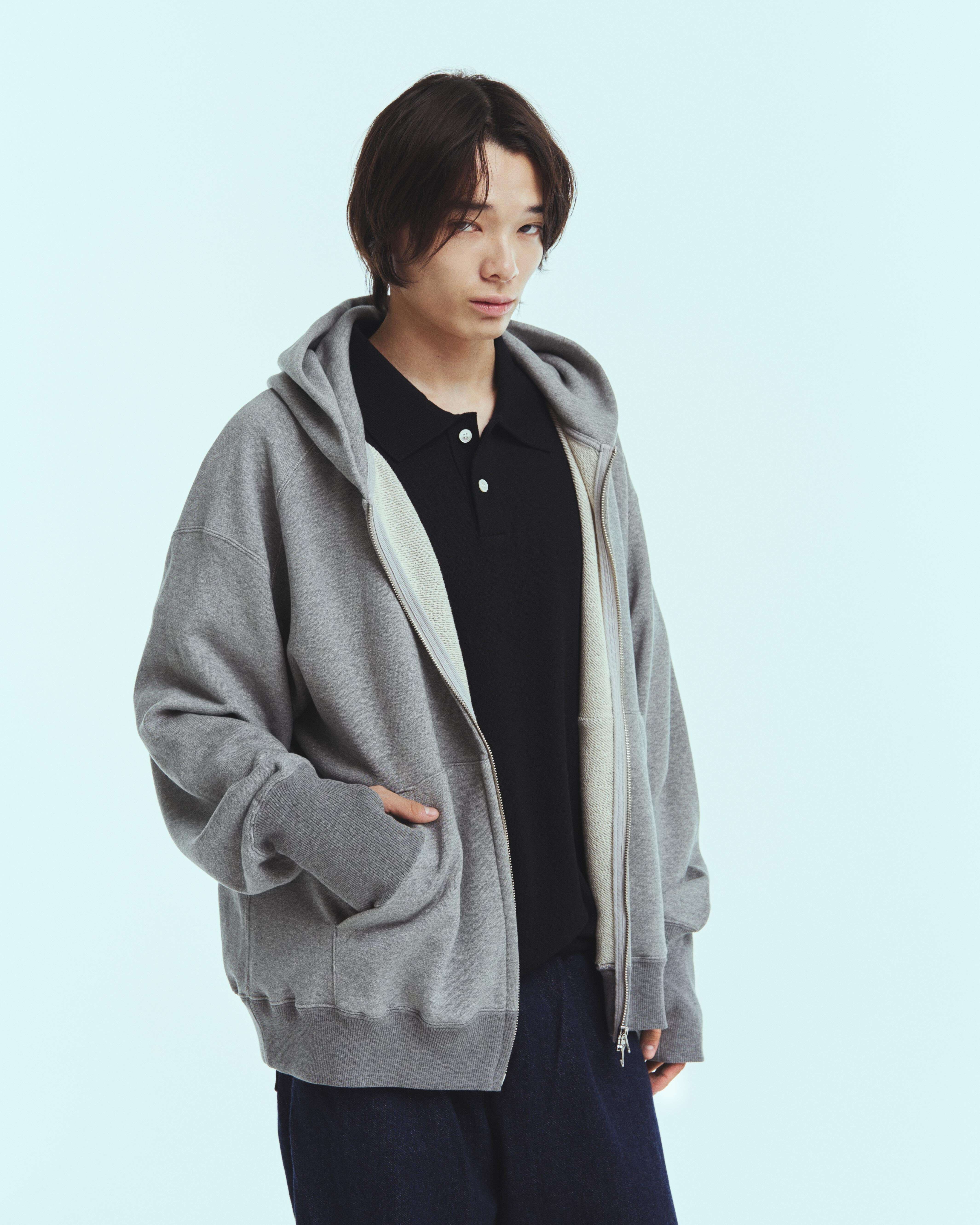 春の着用に適した強撚タイプの薄めのスウェット素材を使用したジップアップフーディーになります。