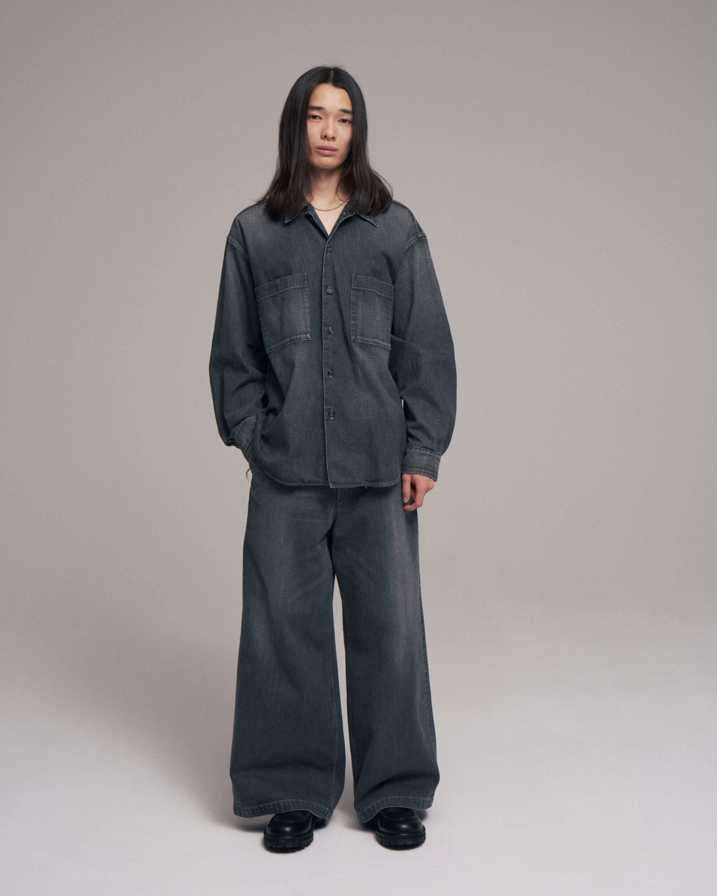 新作のデニムトラックジャケットや、デニムシャツと縫製糸色、加工感を揃えており、セットアップでの着用が可能です。