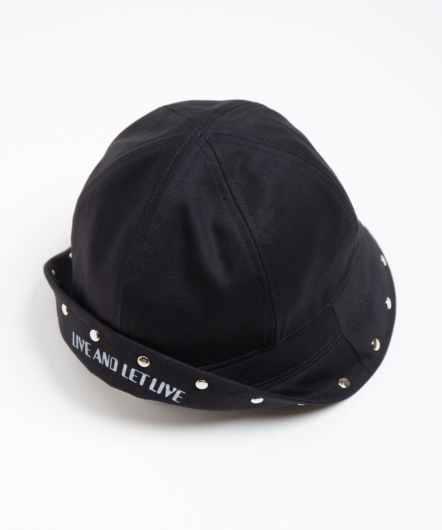 セーラーハットのミリタリー要素にあえてポジティブなメッセージを施すことで、様々な争いへのアンチテーゼとしての平和を表現しています。ブリム淵にはカシメを施したデザインが特徴になっています。サイズ調整スベリを採用しているため、フィット感の調整が可能です。中性洗剤を使用してぬるま湯で手洗いすることが可能です。