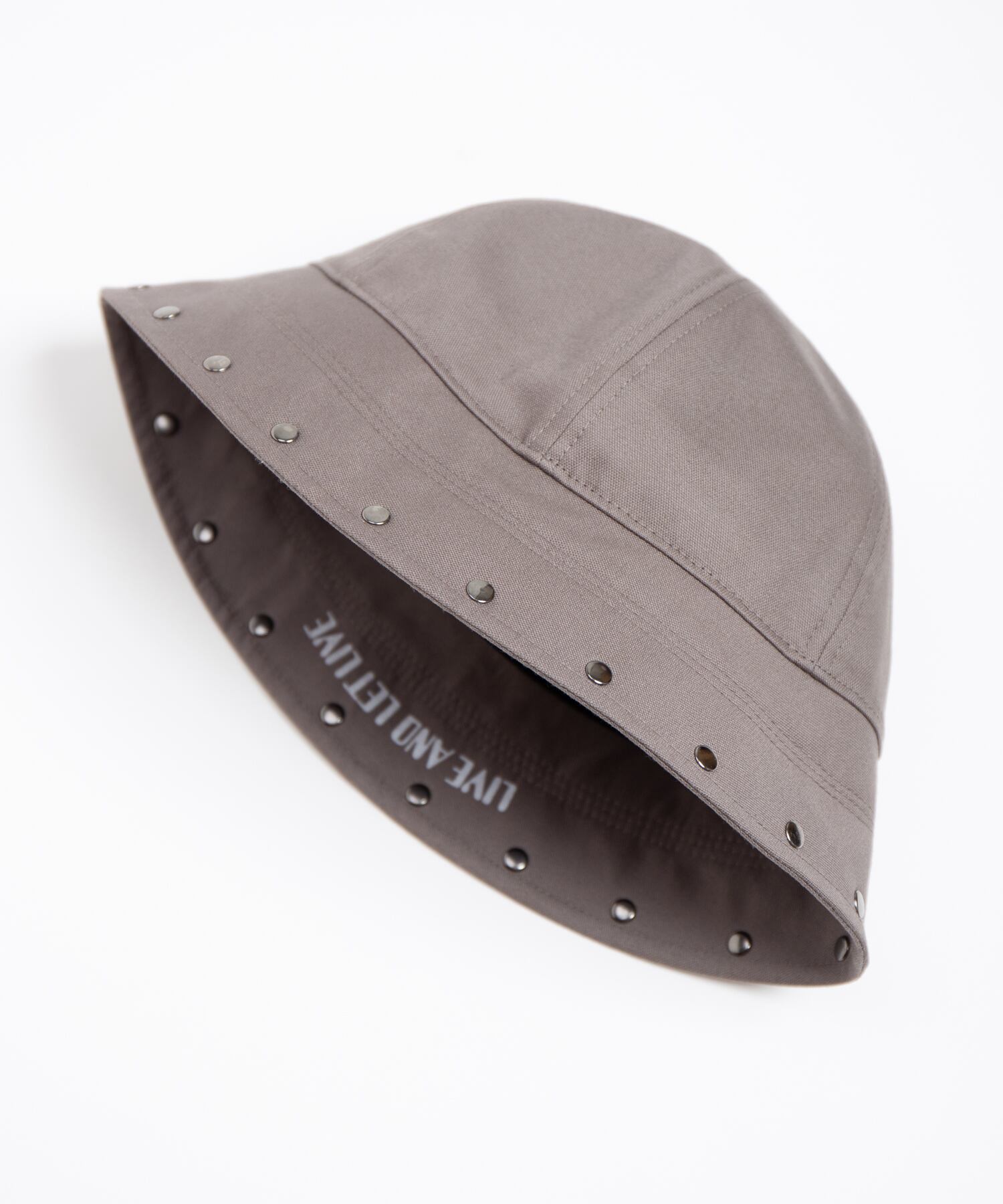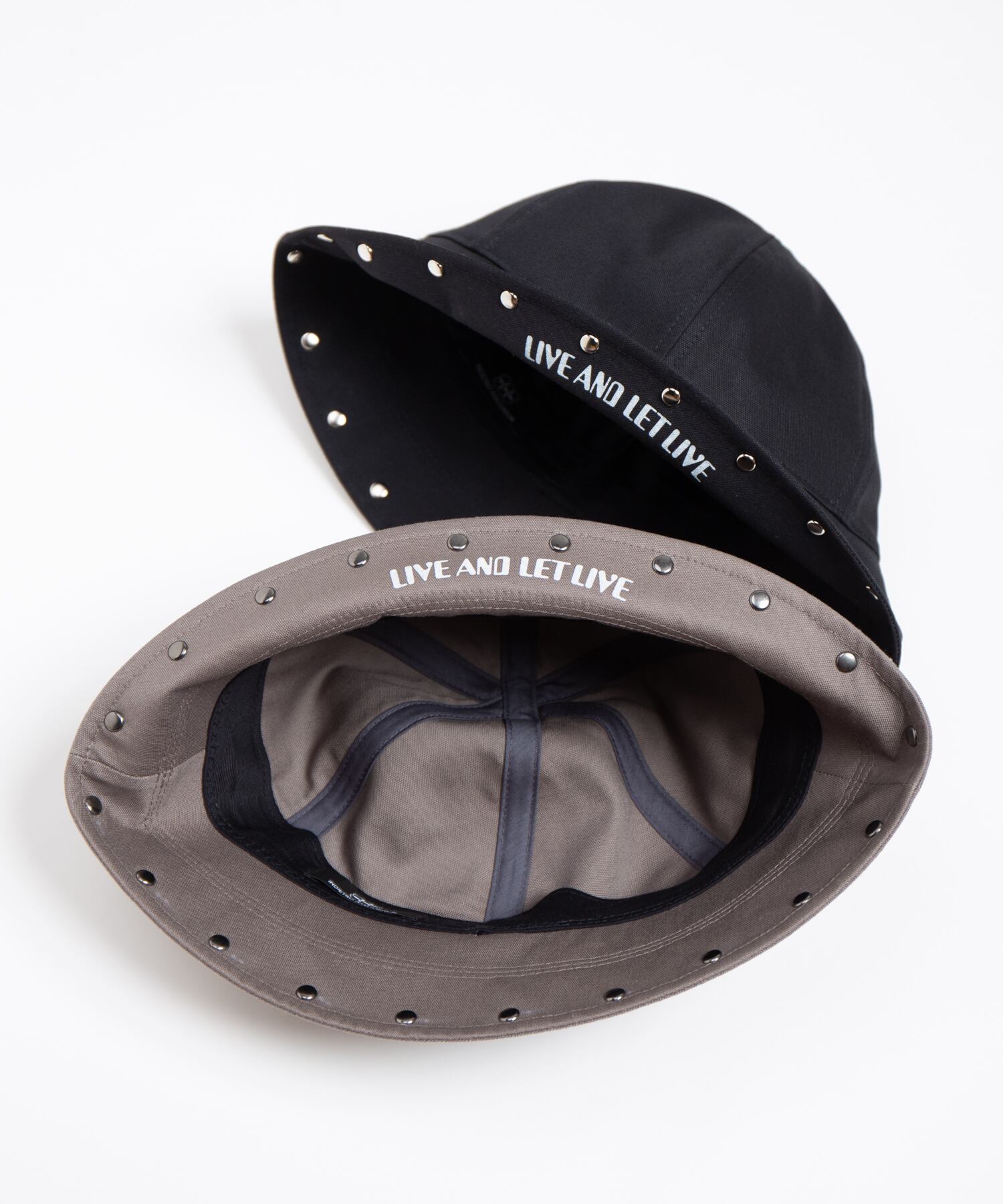 ライトダック生地を使用したセーラーハットです。ブリム裏にはシーズンテーマ『LIVE AND LET LIVE』のプリント施しています。