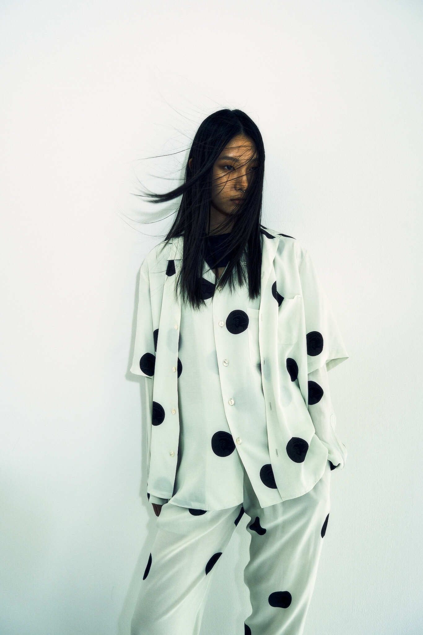 RAYON LONG SLEEVE ALOHA SHIRT〈JAPANESE LOBSTER N POLKA DOT / WHITE〉