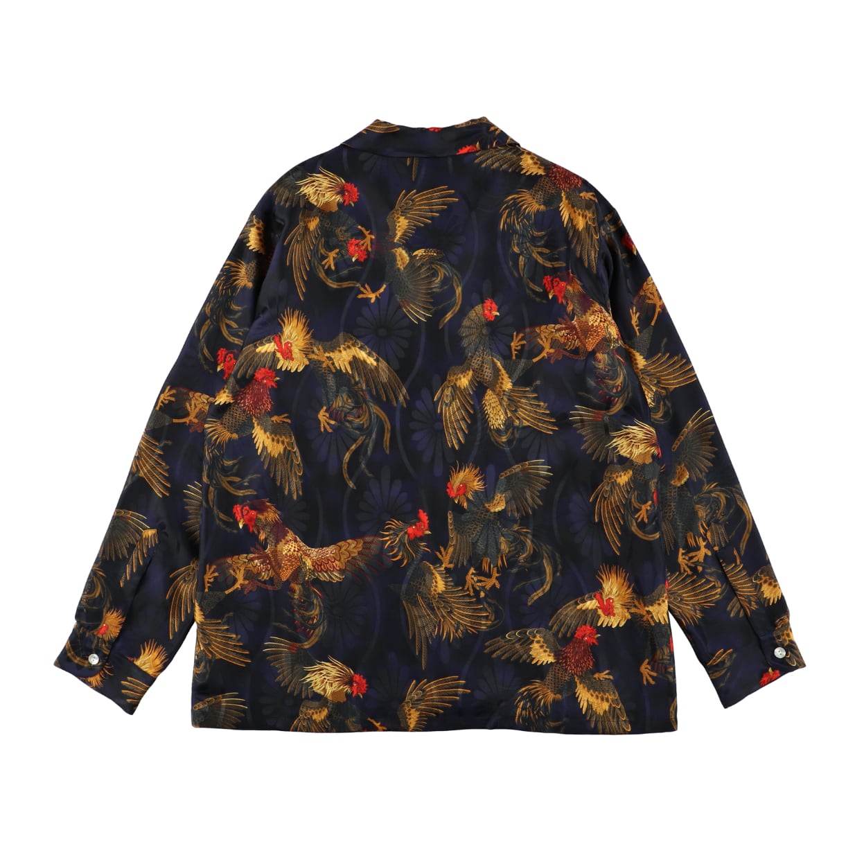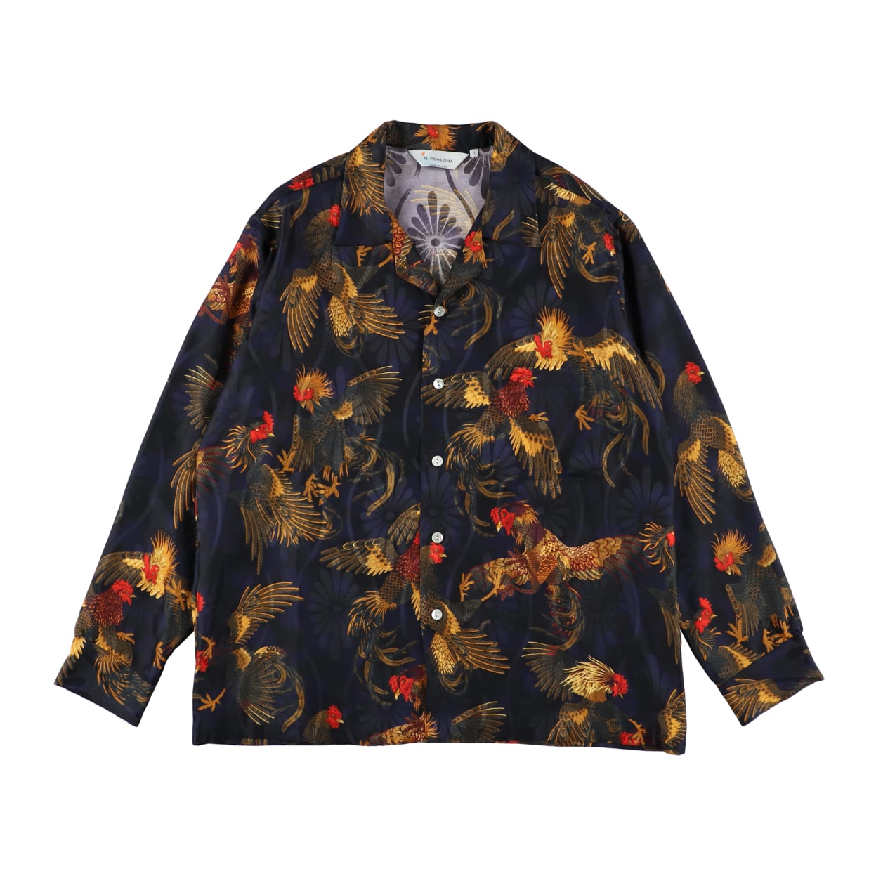 SILK LONG SLEEVE ALOHA SHIRT〈COCK FIGHTING/ BLACK BLUE〉